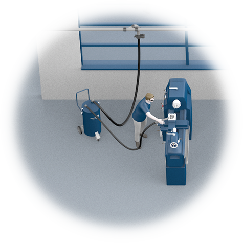 The vacuum producer is the heart of the system. Here the vacuum is created that drives the system. In Dustcontrol extraction systems, the vacuum level is generally from 6 to 40 kPa. Our normal source extraction and vacuum cleaning systems use turbopumps. This device has an ideally suited characteristic capacity for this type of system. Vacuum level increases as more resistance is presented, an important quality in minimizing the possibility of blockages in the tubing system. For applications involving fume and light dust, such as paper, radial blowers are used. These have larger air-flows and operate at a lower, relatively constant vacuum level. Our turbopumps and radial blowers have very high quality built-in silencing, see technical specifications.