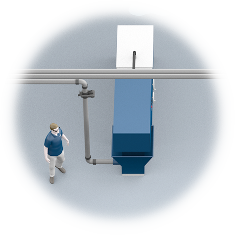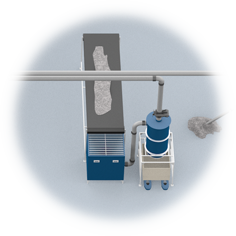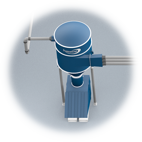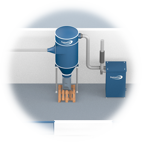 Pre-separators can be used in all applications where the extracted material is coarse or voluminous. These can be placed in the actual workplace for separate handling or recovery of the extracted material, or centrally. Pre-separators separate material from the air flow using cyclonic action or with inertial separation. Inertial separators are generally configured as containers with the inlet and outlet in the same wall of the container. When the air-flow changes direction abruptly, separation occurs for the particles with higher relative mass. When pre-separation is used to accommodate higher material volumes it is also important to consider the type of material discharge to be used. Dustcontrol offers a range of different standard options including; screw compaction, airlocks or container collection.